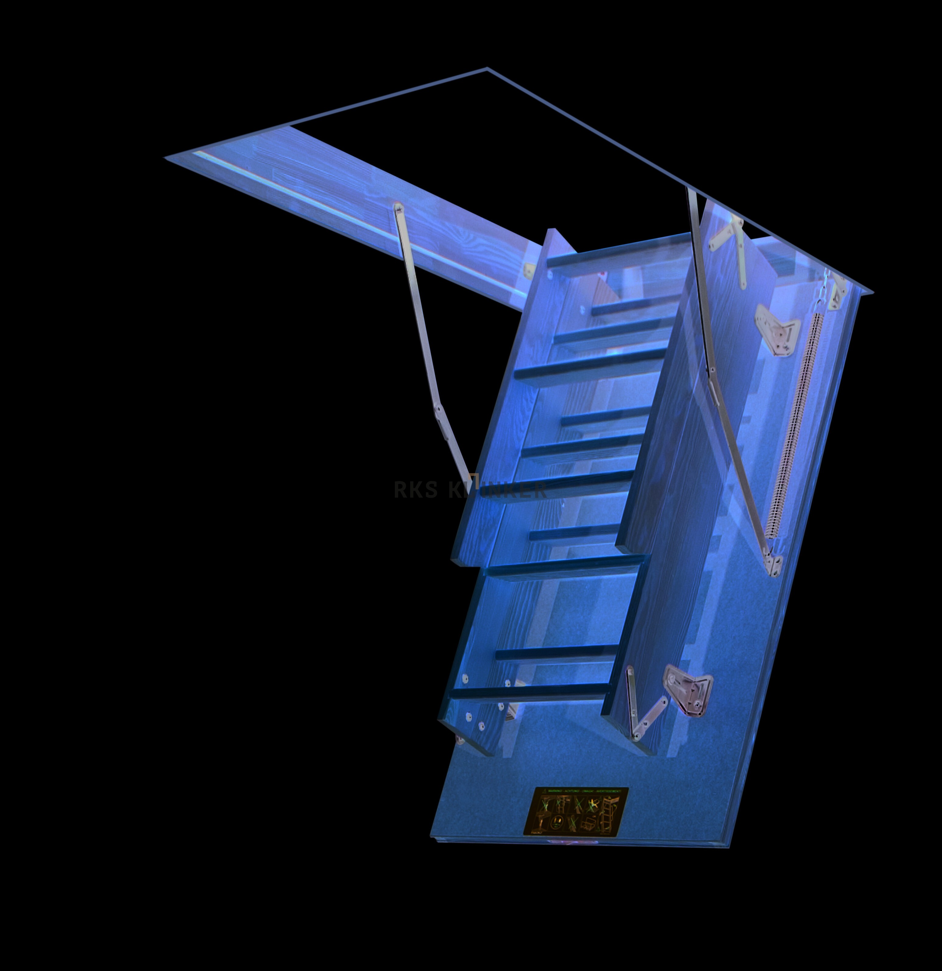 - Устойчивость лестницы гарантируют стальные петли-шарниры.